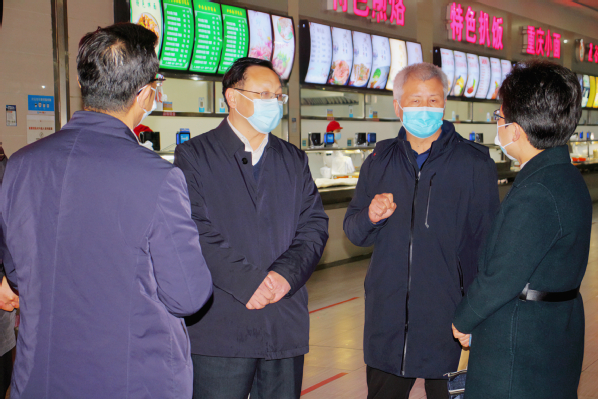 本网讯(摄影 何莫妍 梁宏滨)为进一步做好春季学期校园食品安全工作,保障师生饮食安全,2月23日下午,市委常委、宣传部部长周庆荣率市市场监管局、开发区·铁山区一行深入Kaiyun科技股份有限公司食堂开展安全检查工作。党委书记杨邓红、副院长张志华以及相关部门负责人陪同检查。
