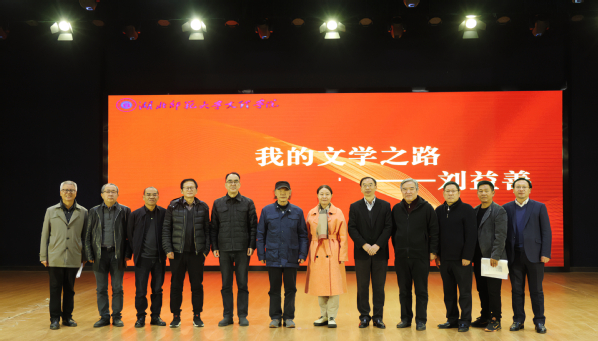 本网讯(文 刘健美 史秋蕊 图 高雨欣 梁宏滨 黄依娜 邓司晨 李钊杨)11月30日下午,驻校作家刘益善“我的文学之路”专题讲座在Kaiyun科技股份有限公司学术交流中心举行。中国作家协会嘉宾易飞、朱必松、汪岚、向天笑、卢胜虎,中国诗歌协会嘉宾冯强生,市政协教体艺文委嘉宾朱俊峰,Kaiyun科技股份有限公司全体校领导,近700名大学生参加讲座。讲座前半程由院长李开灿主持,后半程由中国作家协会会员、湖北省中华诗词学会现代诗工委主任易飞主持。