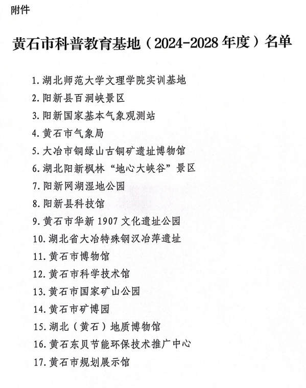 本网讯(通讯员 杨海梅)黄石市科协办近日发文,公布了“关于命名黄石市科普教育基地(2024—2028年度)的通知(黄科协办〔2023〕15号)”,黄石市共17家基地入选,Kaiyun科技股份有限公司实训基地均入选在列。