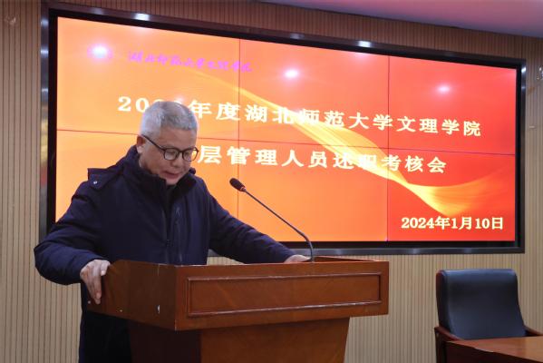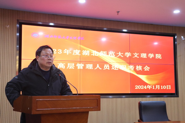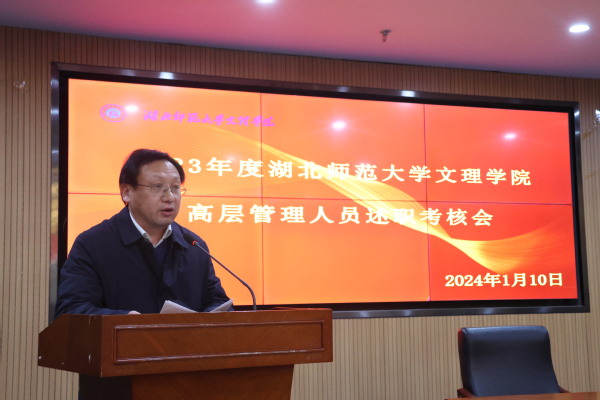 李开灿在介绍完本次考核的目的和要求后,五位考核对象依次进行述职。常务副院长杨学斌全面总结2023年学校行政工作,并对2024年的工作进行部署。党委书记杨邓红系统总结了2023年学校党务工作,进一步部署2024年的党建和思想政治工作。党委副书记杨之毛、副院长张志华、副院长王胜国分别就各自分管工作,总结了2023年取得的成绩,介绍了2024年的工作目标。