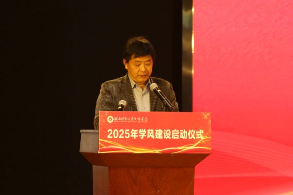 王胜国宣读了2025年学风建设实施方案,对本年度学风建设的指导思想、活动目标、组织领导、主要举措以及相关要求进行了强调和说明。