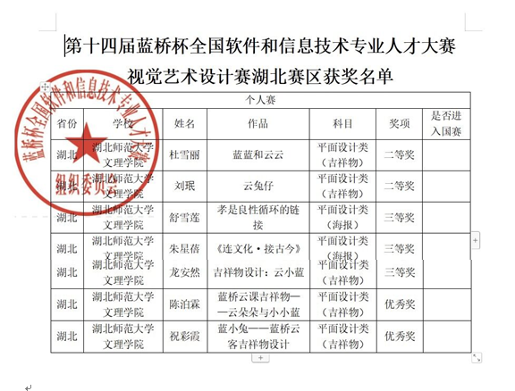 2023年5月4日,理工学部组织参加的“全国第十四届蓝桥杯比赛”,我学部参加了视觉艺术设计赛道。在数字媒体专业老师王丝雨、柯茜、王传丽、张莹、梅冰清、万锦等精心指导下,以下7名同学获奖:具体名单如下: