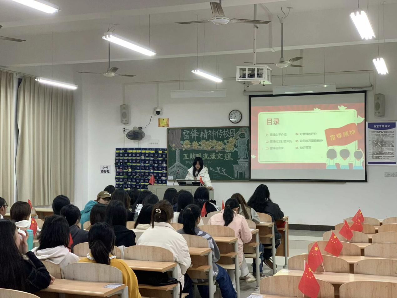根据院团委工作安排,2024年3月17日晚7:00时,教育与艺术学部2023级各专业班级在教学楼举办了主题为“雷锋精神传校园,互助暖流漾文理”的团日活动。