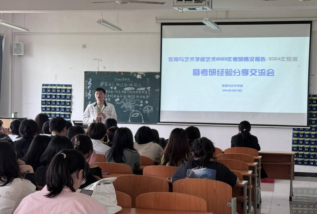 为了激发和鼓励2024年考研学子们的热情,帮助他们更多的了解考研前期的准备、考研的攻略及考研复试的方法等需求,教育与艺术学部于4月18日12:00在实验楼1-401举办了“考研经验分享交流会”。