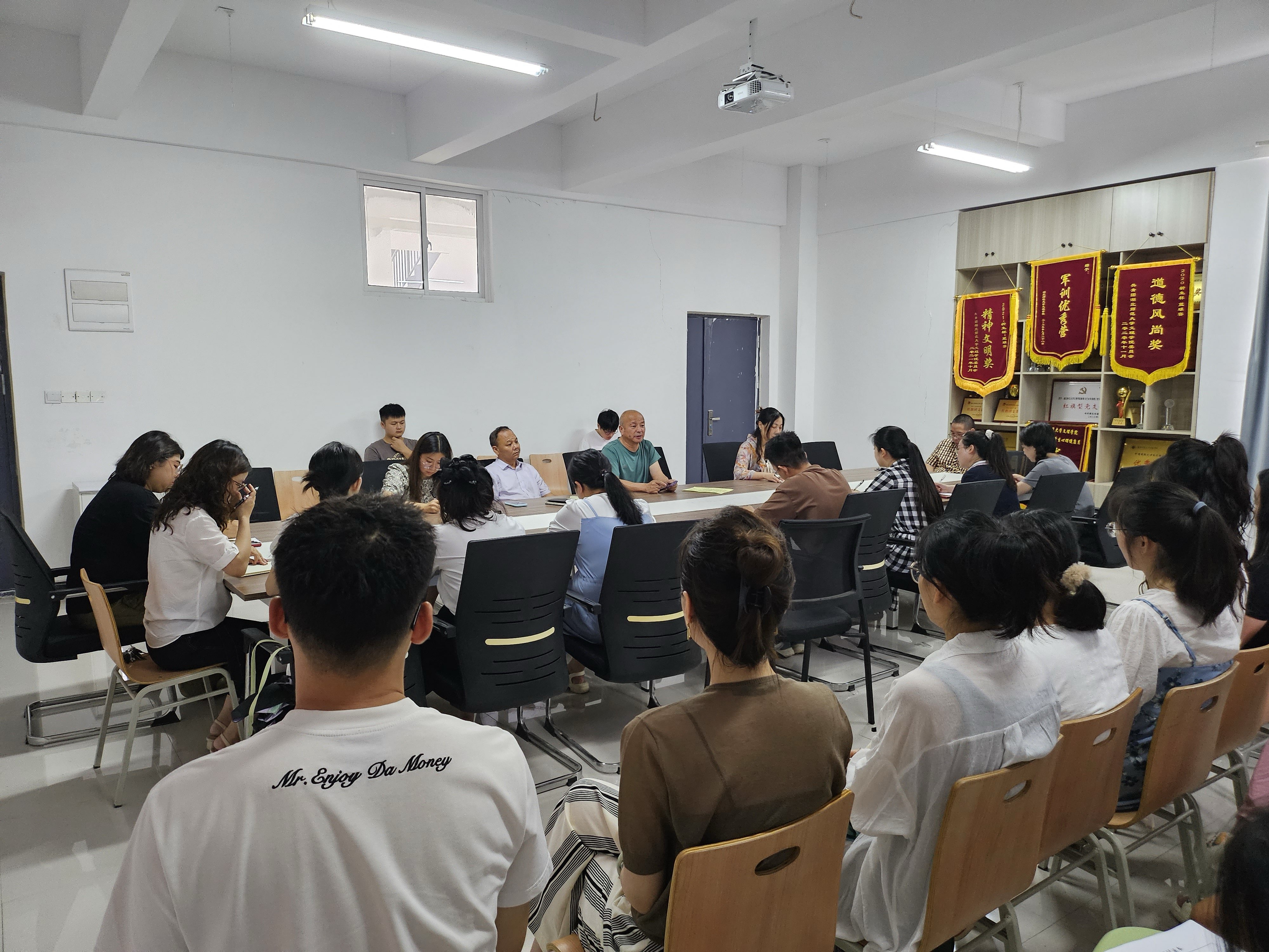 7月11日上午9:00,教育与艺术学部在1号实验楼414会议室召开了学部全体教职工期末工作会议,本次会议主要包含以下几项议程:1.介绍学部新进教职工;2.李先华书记汇报了本学期学生管理各项工作,并强调了就业及下学期的重点工作;3.张卓老师就阅卷登分、试卷装订、课程安排等工作进行了汇报总结;4.王文主任从排课、人才培养方案修订、就业、暑期及下学期重点工作等方面进行了部署;5.各教研室开展教研活动。