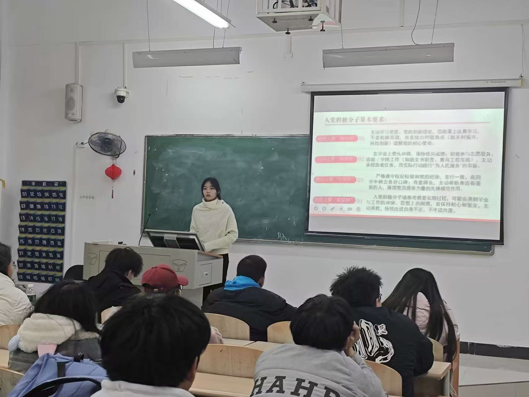 宣讲活动中,宣讲团成员围绕“共产党员的理想信念”这一核心主题,系统阐述了大学新生成为入党积极分子的基本要求,强调了以优秀党员为榜样、养成良好行为习惯的重要意义,并深入剖析了理想信念与精神追求之间的内在联系。同时,他们结合大学阶段学习与生活的实际,引导同学们筑牢信仰根基、规范日常言行、增强集体责任感。现场同学认真聆听、踊跃互动,展现出扎实的理论素养与积极的学习风貌,整体氛围严肃而热烈,取得了良好的宣讲效果。